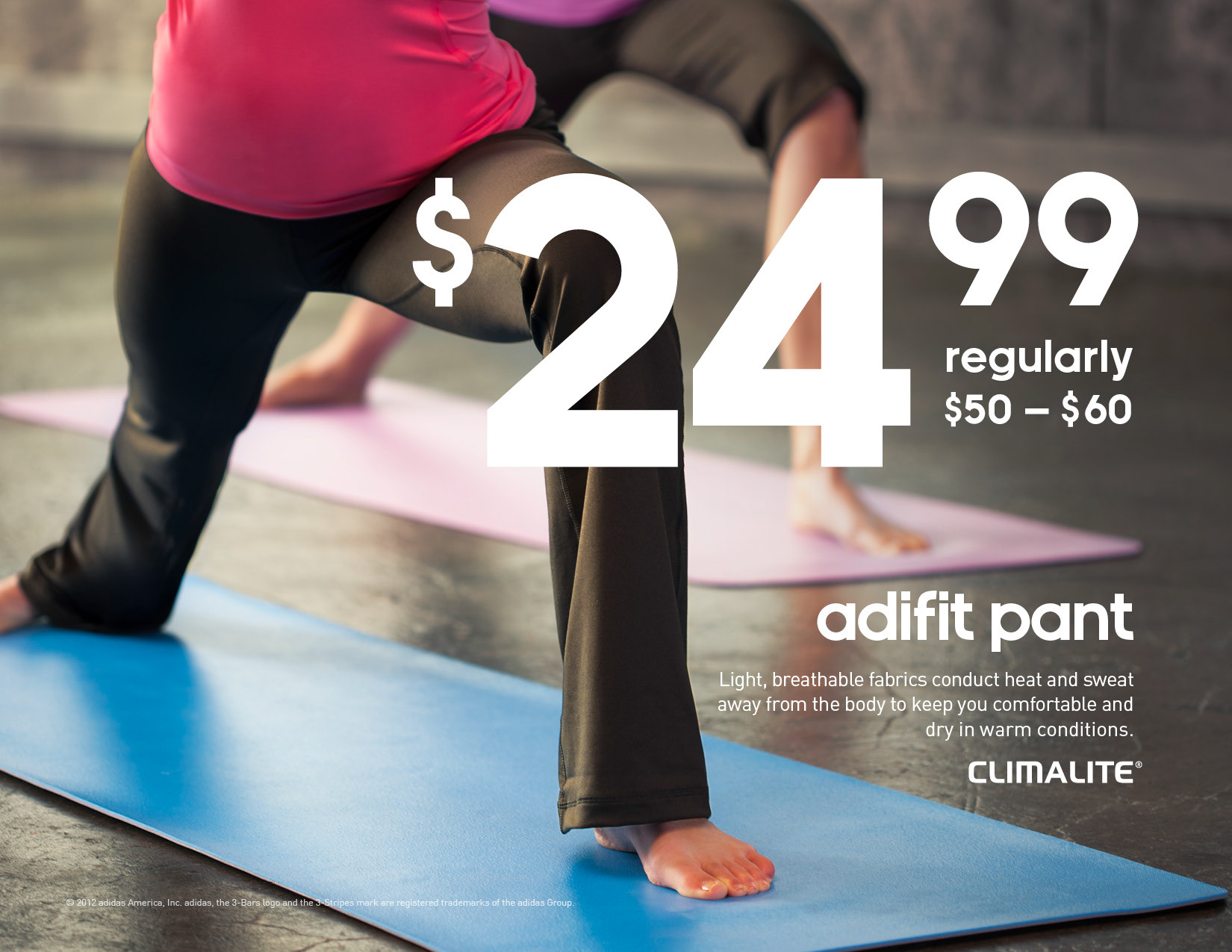 National adidas campaign to launch yoga apparel in adidas outlets.